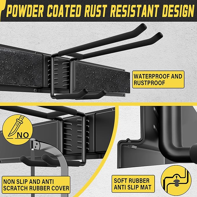 - VERSATILE TOOL RACK:Our Garage Storage System Isn't Just for Your Garage Tools;itβs Perfect for Arranging Garden Tools,Brooms,Hoses,and Even Sports Equipment Like Hockey Sticks And Ski Gear.This Multifunctional Storage Solution Maximizes Your Space.