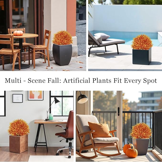 - 【UV Resistant & Weatherproof – Outdoor Durable】Made with UV-protected plastic, these artificial outdoor plants resist fading and cracking, even under autumn sun, wind, or rain. A long-lasting way to keep your fall décor bright and festive