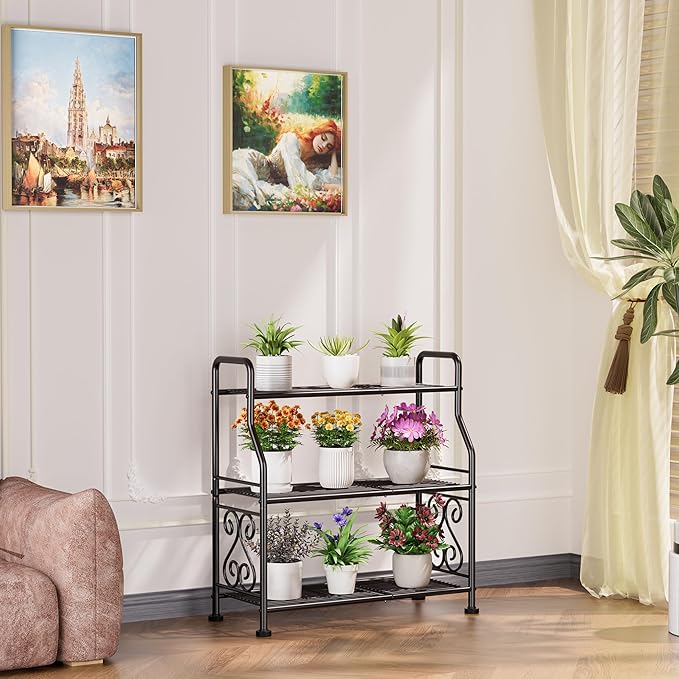 • 【Large Capacity Black Display】Holds 3+ plants per tier (9+ total) on 11.4" deep shelves. Ideal for tall herbs, flowers and bonsai. Elegant black finish complements any decor.
