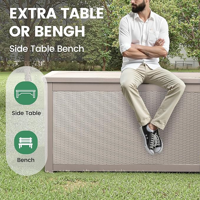- Stylish and Practical Design:The surface has an attractive rattan effect, which is not only aesthetically pleasing but also includes a lockable lid for added security and privacy
