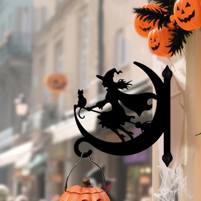 peacoblue Iron Plant Hangers Hooks for Outdoor Indoor Hanging Plants Flower Fern Pots Lantern Bird Feeder,11.6"x13.6" Weather Resistant Metal Wall Holder for Porch Garden Farmhouse(Witch and Cat)