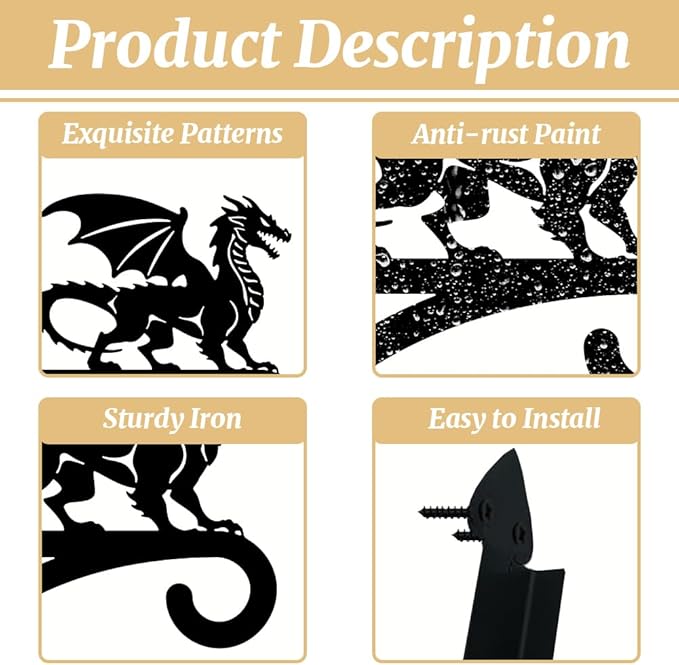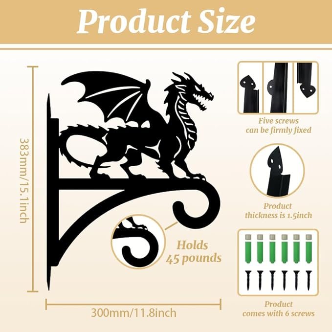 peacoblue Iron Plant Hangers Hooks for Outdoor Indoor Hanging Plants Flower Fern Pots Lantern Bird Feeder,11.8"x15.1" Weather Resistant Metal Wall Holder for Porch Garden Farmhouse(Dragon)