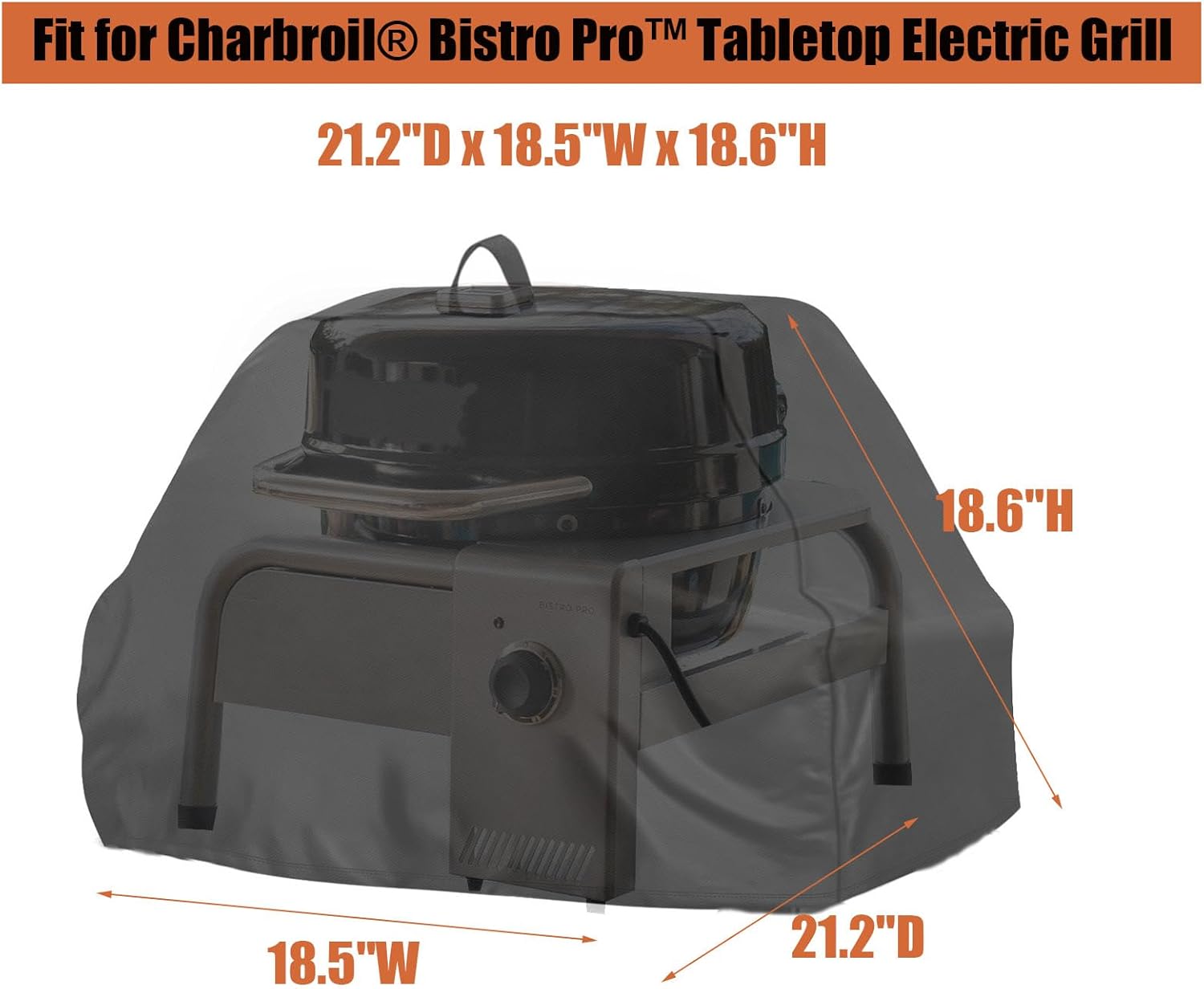 • Grill Cover Size: 21.2"D x 18.5"W x 18.6"H. Compatible for Charbroil Bistro pro tabletop electric grill, or orther grill of the same size.Please check your grill's dimensions