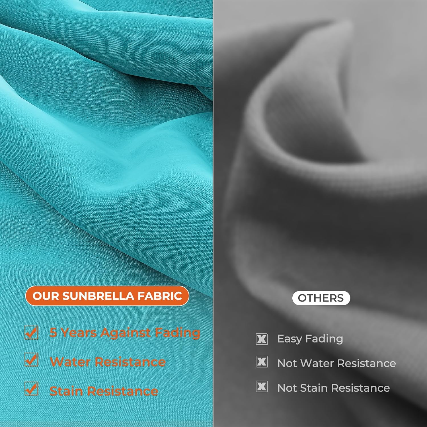 - Sunbrella Fabric Canopy: Made from 100% solution-dyed acrylic, the 270g Sunbrella fabric is breathable, water- and stain-resistant, and offers 5-year fade protection—perfect for long-lasting outdoor use.