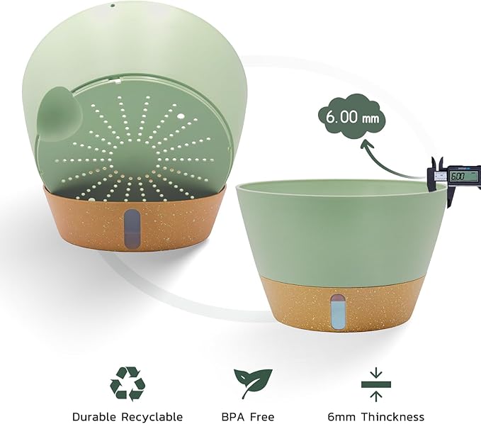 - 【Ventilation & Drainage】The easy-to-remove tray design simplifies cleaning and maintenance. The tray stores water for 7 days or more, and the mesh ventilation holes in the bottom of the self-watering pot ensure optimal aeration, providing plenty of breathing space for your plants