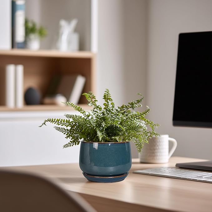 - Modern Ceramic Planter: These 4 inch plant pots with sleek curved designadd and beautiful glazed effect, highlights to your indoor or outdoor space decoration, suitable for various styles of home decor, room decor, living room decor, bathroom decor, office decor, desk decor, garden decor, patio decor