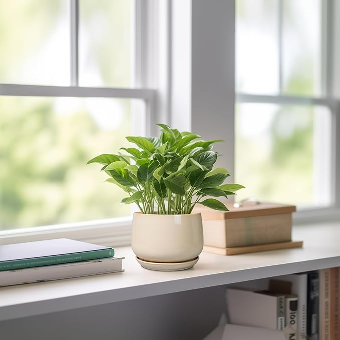 - Modern Ceramic Planter: These 4 inch plant pots with sleek curved designadd and beautiful glazed effect, highlights to your indoor or outdoor space decoration, suitable for various styles of home decor, room decor, living room decor, bathroom decor, office decor, desk decor, garden decor, patio decor