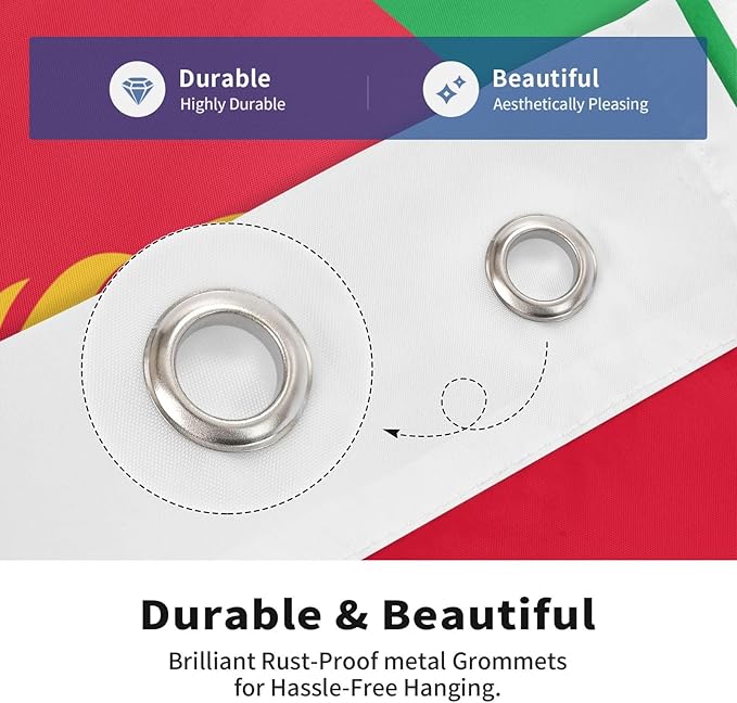 - This 2x3 ft flag Eritrea Eritrean Flag banner is stitched double all around the edge and strengthened by two brass grommet to increase flag life and prevent fraying. Installation and disassembly are very convenient.