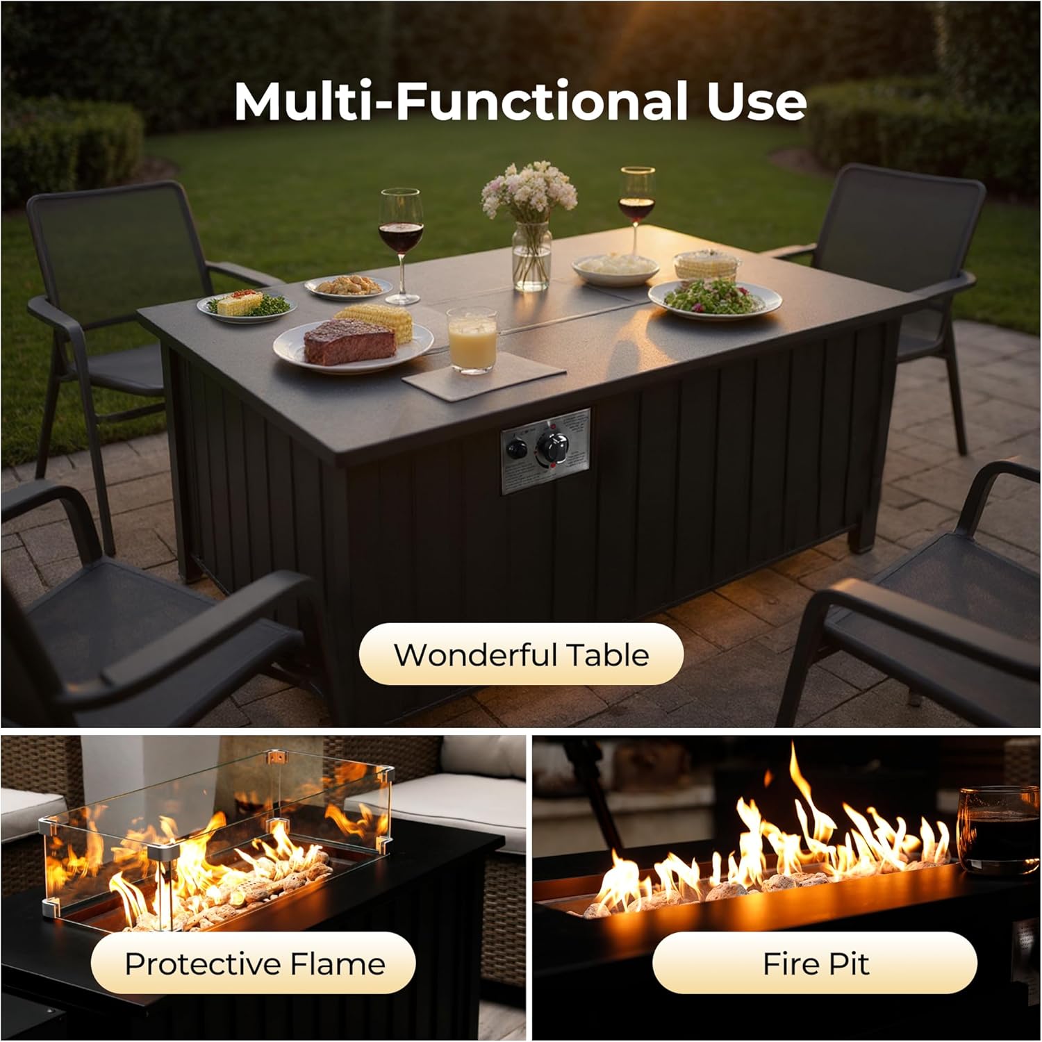 - 【Truly Ready-to-Use Complete Kit】Enjoy instant ambiance with our fire pit table! Everything essential is included: Weatherproof Cover, Premium Volcanic Rocks, Glove, plus all necessary hardware & tools for simple setup. No hidden costs – simply connect your propane tank and start enjoying your fire pit table immediately!
