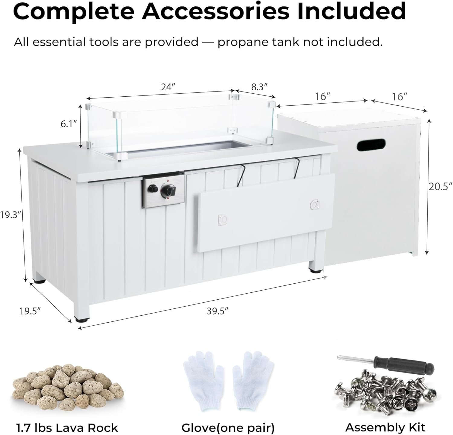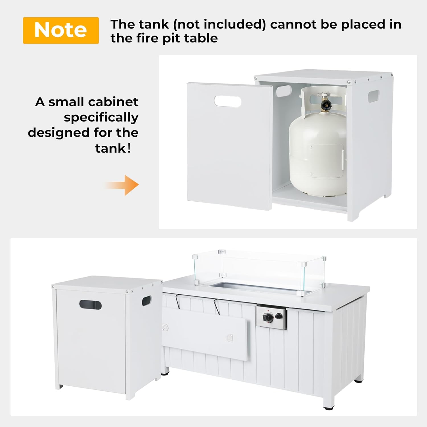 KOL 50,000 BTU Propane Fire Pit Table with Cabinet-39.5in White Gas Fireplace with Glass Wind Guard & Lid, Outdoor Rectangular Cold Rolled Plate Plastic Spraying Firepits for Patio, Backyard, Balcony