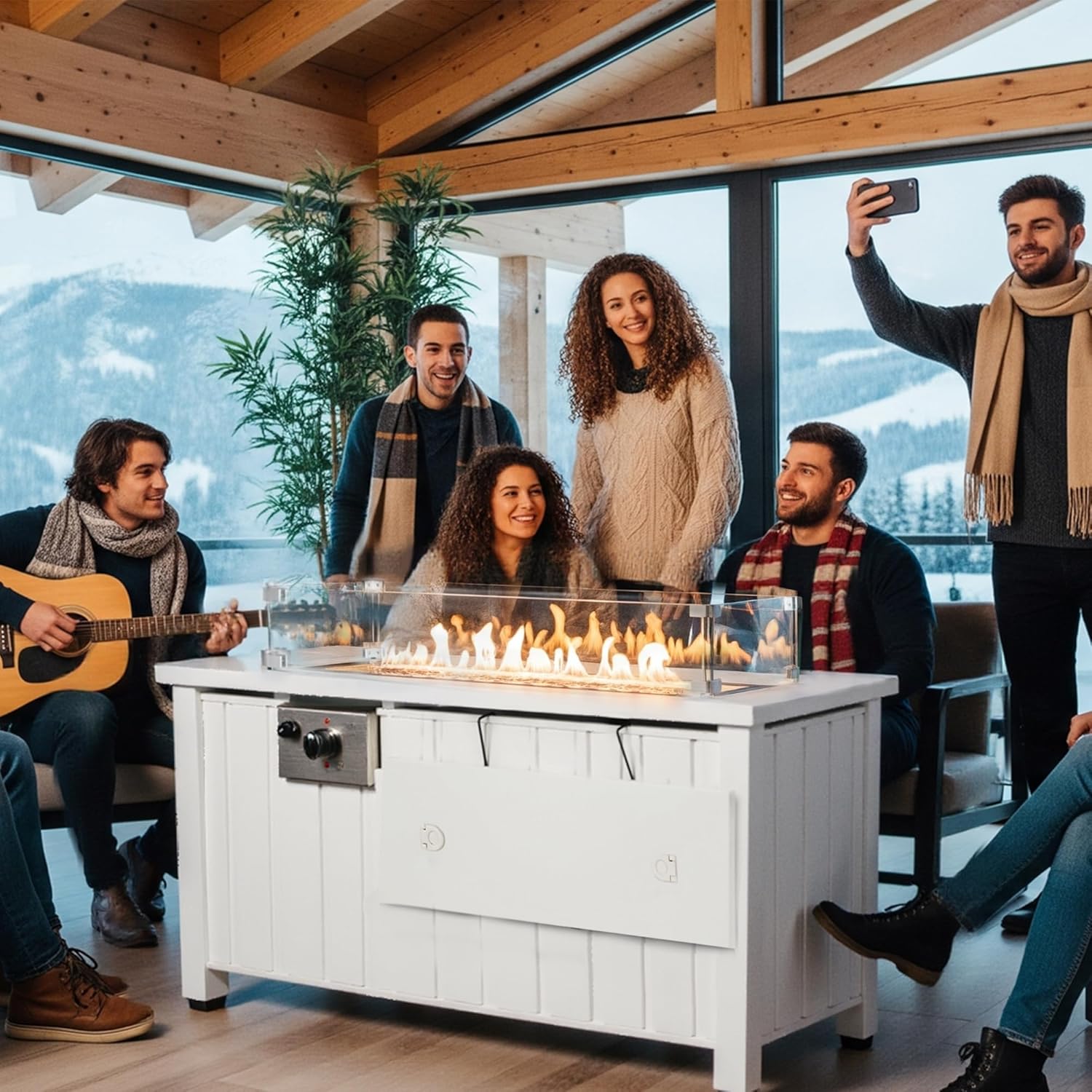 - 【Your Stylish, All-Day Entertaining Hub】This sleek white table transforms in seconds – enjoy its spacious 39.5-inch top for daytime dining or decor, then ignite the mesmerizing 50,000 BTU fireplace at night. The crystal-clear glass beautifully frames the flames, making it the ultimate eye-catching centerpiece for any patio, backyard, or balcony gathering.