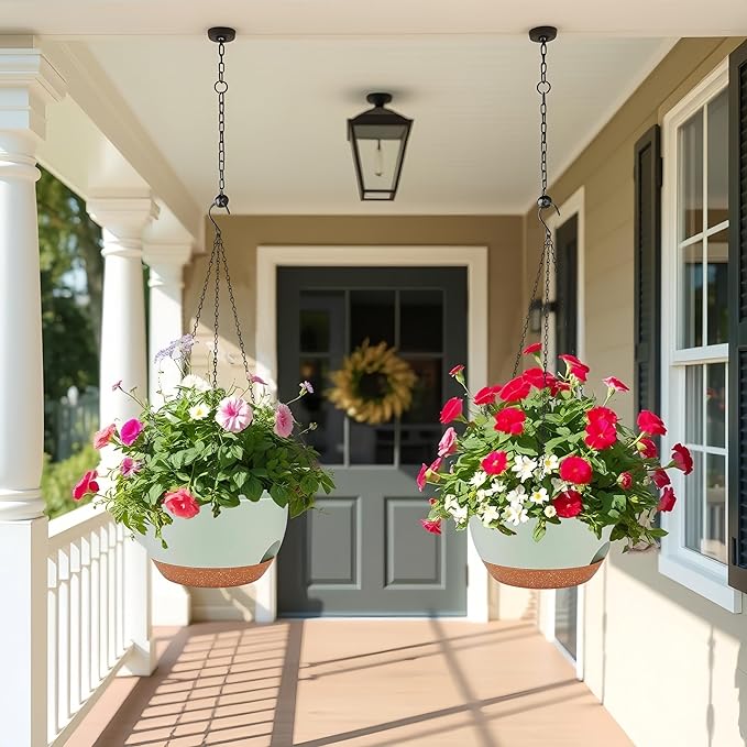 - ✅ 2 Large Self-Watering Planters: Double the value! Includes two 12-inch wide plastic hanging planters with built-in self-watering reservoirs to reduce the need for frequent watering and keep plants healthier.