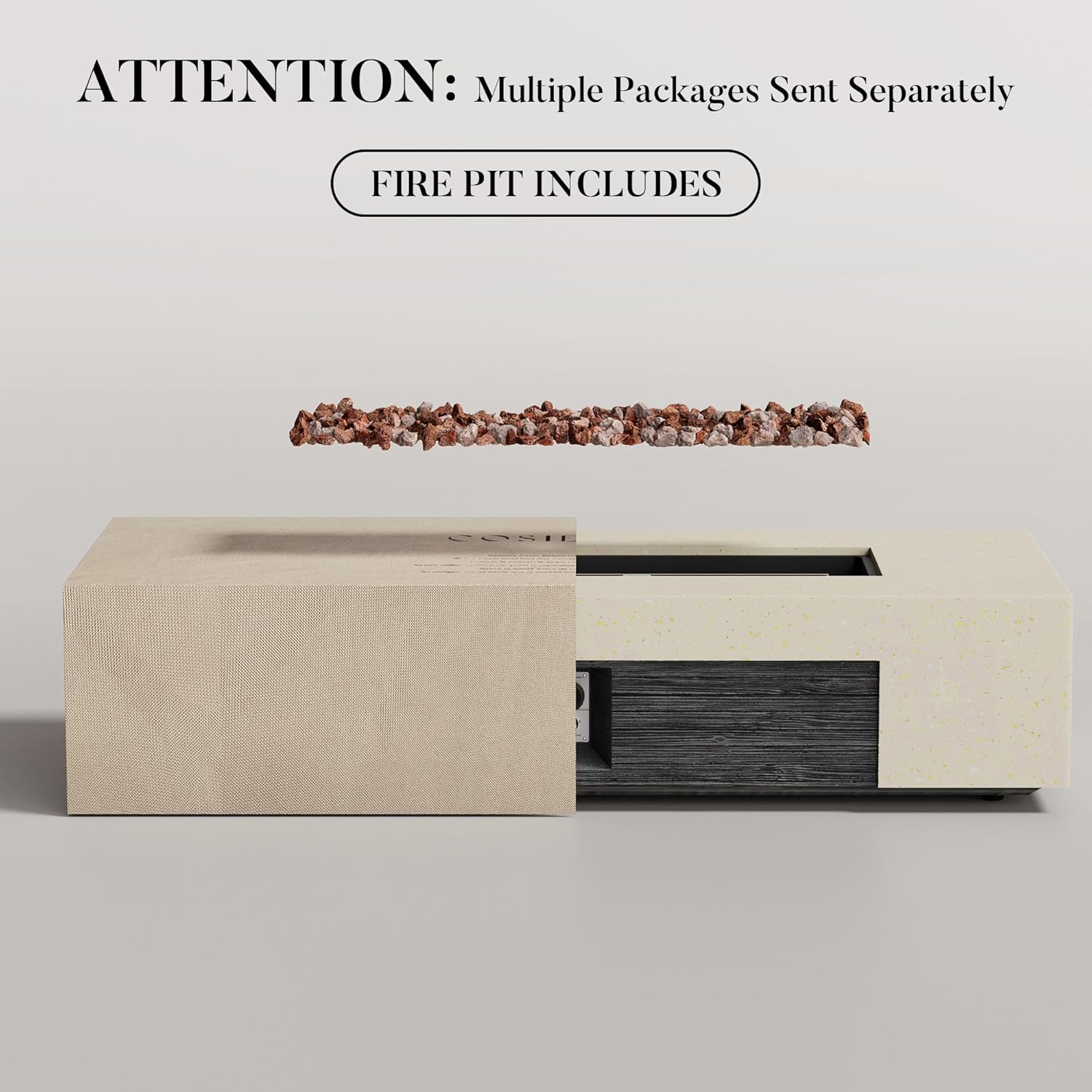 COSIEST 56" Outdoor Propane Fire Pit Table Rectangle Gas Fire Pit Table with Concrete & Wood Grain Design, 50000BTU CSA Certified Electronic Ignition Fire Tables for Patio, Backyard, Garden Heating