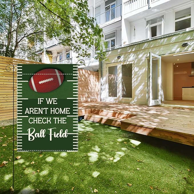 Funny Garden Flag Baseball Sports Mom Gifts for Baseball Lovers If We Aren'T Home Check The Ball Field Small Double Sided Burlap art Stained Glass Style Garden Flags 12 x 18 Inch for Outside