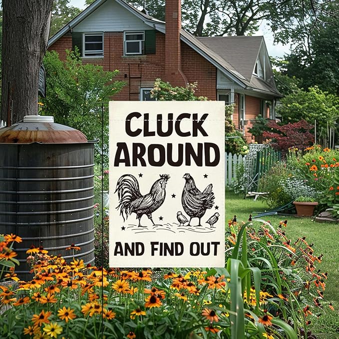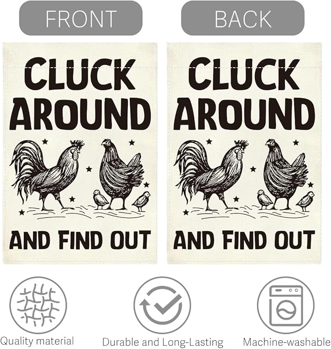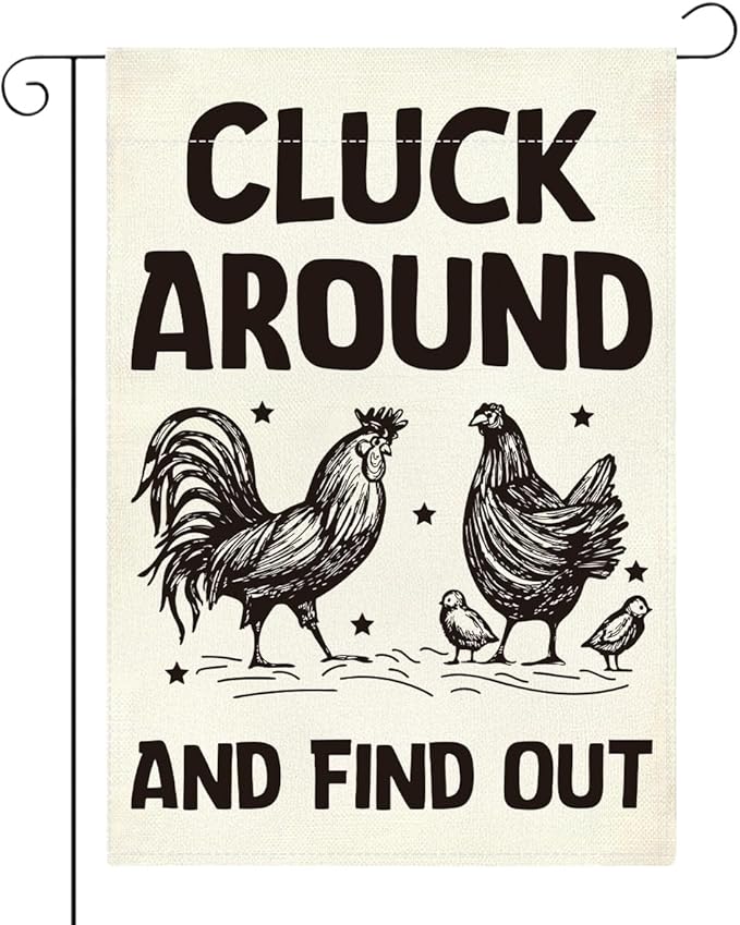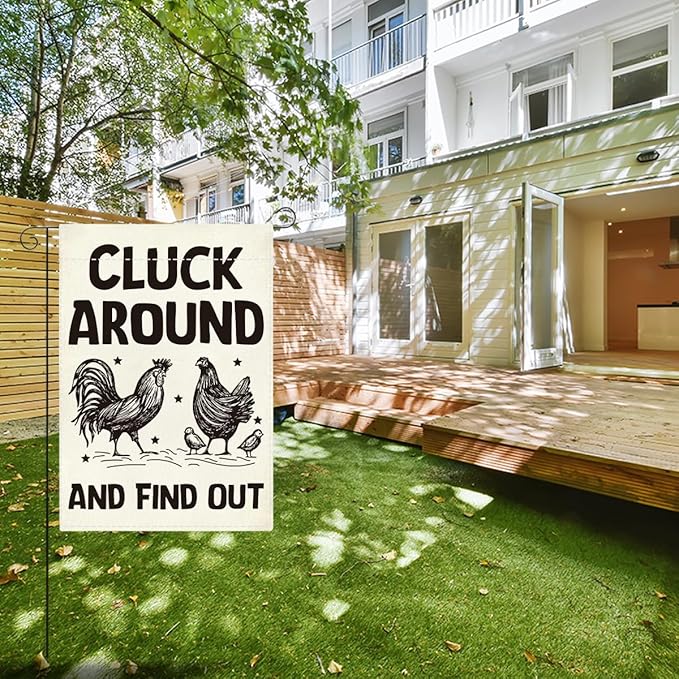 Welcome Summer Funny Chicken Garden Flag Outdoor Decorations Cluck Around And Find Out Small Double Sided Burlap art Stained Glass Style Garden Flags 12 x 18 Inch for Outside