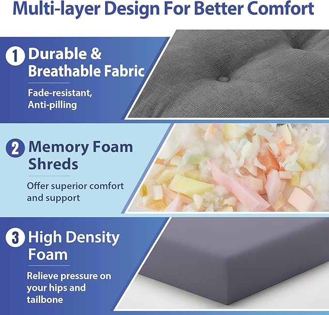 • 【Premium Memory Foam Support】: Designed with high-density memory foam for long-lasting support and comfort, our dining chair cushion offers superior comfort and support, relieving pressure on your hips and tailbone during extended seating