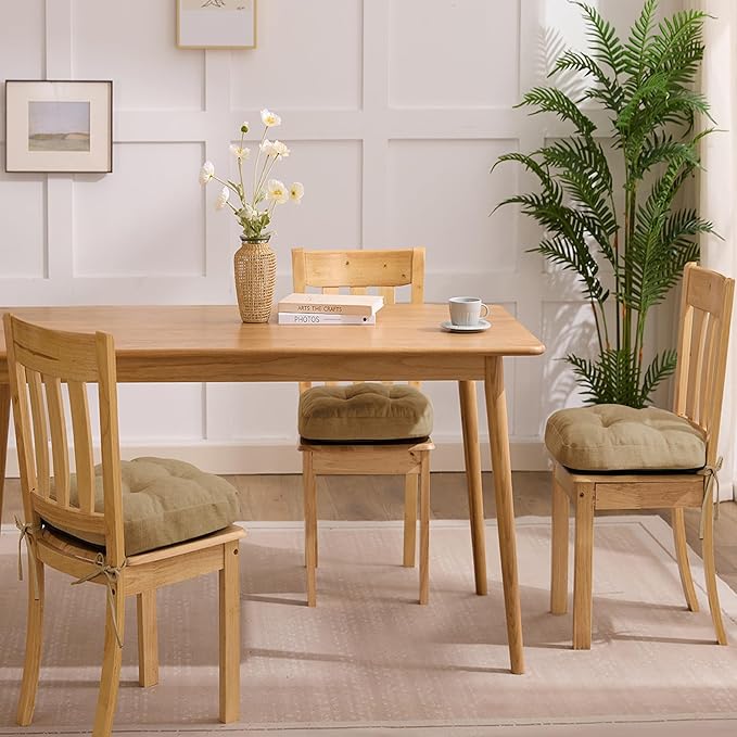 Chair Cushions for Dining Chairs, Dining Chair Cushions, Tufted Indoor Chair Pads with Ties & Non Slip Backing, Seat Cushions for Kitchen Chairs 16.5” x 16.5” x 3.5”, Set of 4, Khaki