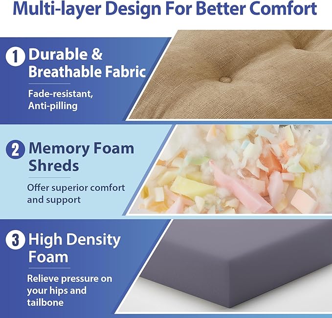 • 【Premium Memory Foam Support】: Designed with high-density memory foam for long-lasting support and comfort, our dining chair cushion offers superior comfort and support, relieving pressure on your hips and tailbone during extended seating