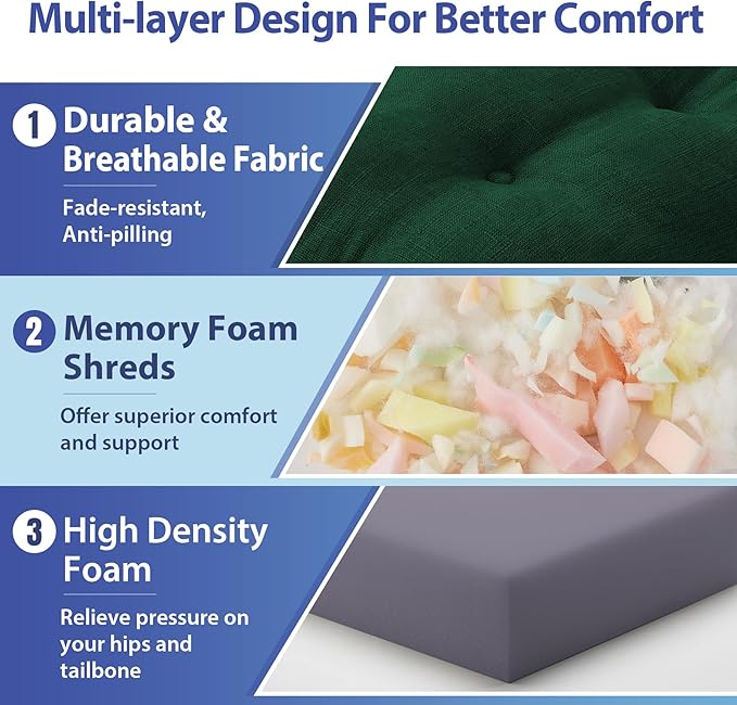 • 【Premium Memory Foam Support】: Designed with high-density memory foam for long-lasting support and comfort, our dining chair cushion offers superior comfort and support, relieving pressure on your hips and tailbone during extended seating