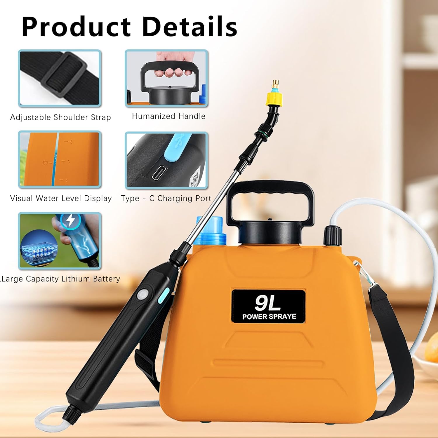 - ๐ Long-Lasting Battery-Powered Sprayer โ Up to 3 Hours of Runtime: Enjoy uninterrupted spraying with our upgraded electric garden sprayer, equipped with a powerful rechargeable battery and high-efficiency pressure motor. One full charge delivers up to 3 hours of continuous operation. The padded, adjustable shoulder strap ensures comfort during extended useโperfect for yard work, landscaping, and farm chores