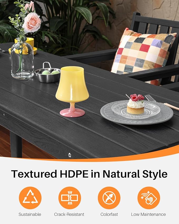 - Durable HDPE Bar Stool Set for Year-Round Use: This Obsidian 3-piece patio bar set includes two Adirondack-style HDPE bar stools and a matching 60"L x 22"W x 41"H rectangular outdoor bar table. Made from premium HDPE lumber with an authentic woodgrain finish, this set resists fading, cracking, and moisture damageβideal for balconies, patios, pool decks, or outdoor bars throughout all seasons.