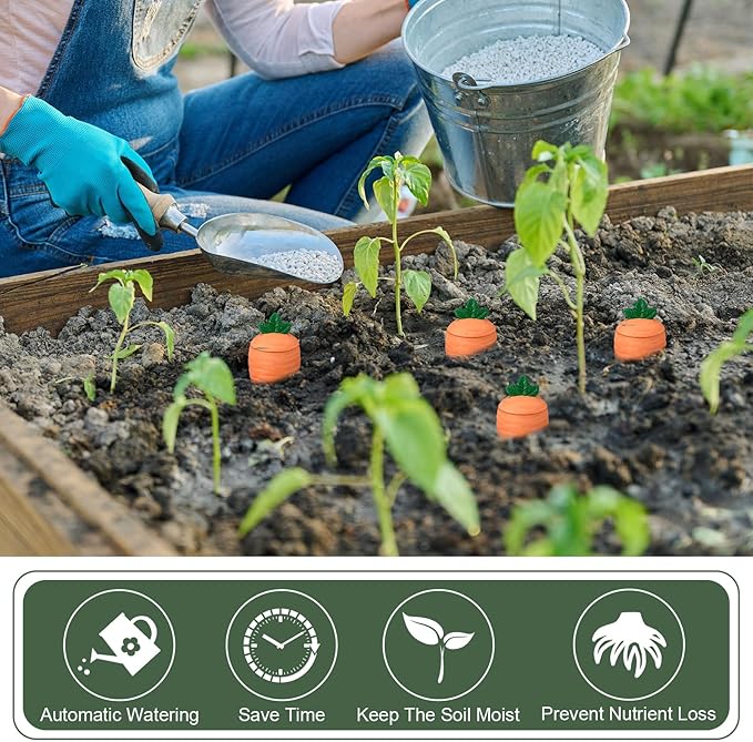 - Set of 4 Carrot-shaped Watering Spikes: each terracotta watering spike holds about 24oz (700ml) with an adorable carrot design that provides continuous moisture for up to 3 weeks, preventing overwatering, keeping plants hydrated while adding garden charm