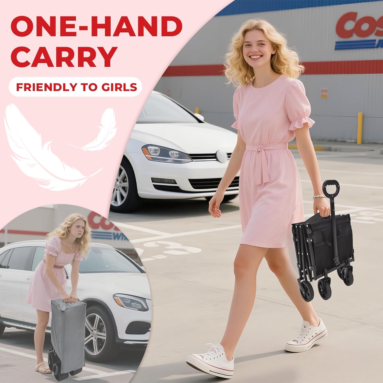 - We Heard You:Meet the ultra‑light Portable DUHKOI folding wagon—just 11 lbs, lighter than a small dog and friendly to every girl out there. One hand lifts it, no sweat, no strain. Say goodbye to sore backs and hello to the prettiest, easiest version of you—anywhere, anytime