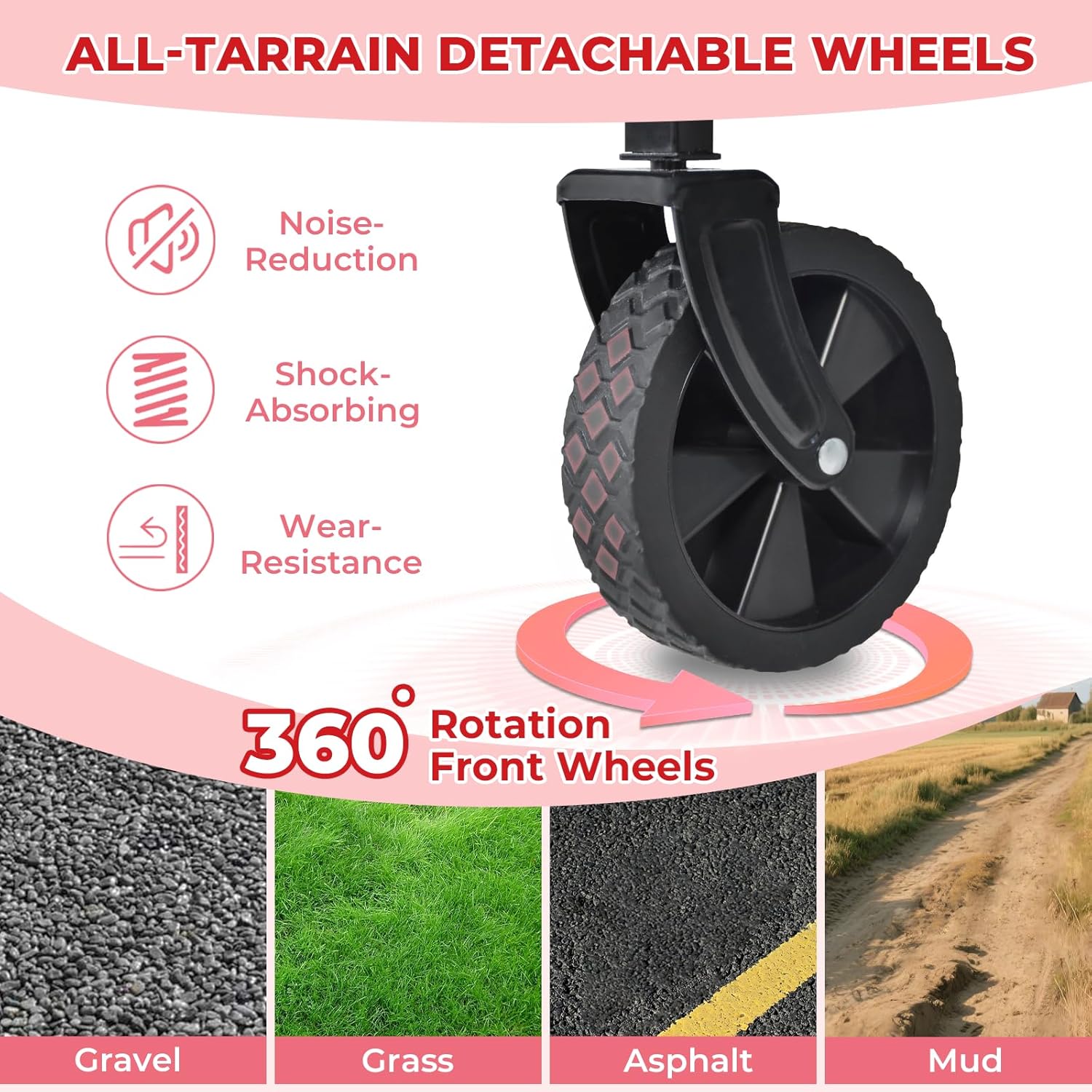 - Smooth 360° Wheels For All-Terrain Use:Equipped with quiet, low-noise 360° swivel wheels, this foldable cart glides over sand, grass, gravel, or pavement. Easy to steer on garden paths, parking lots, or park trails