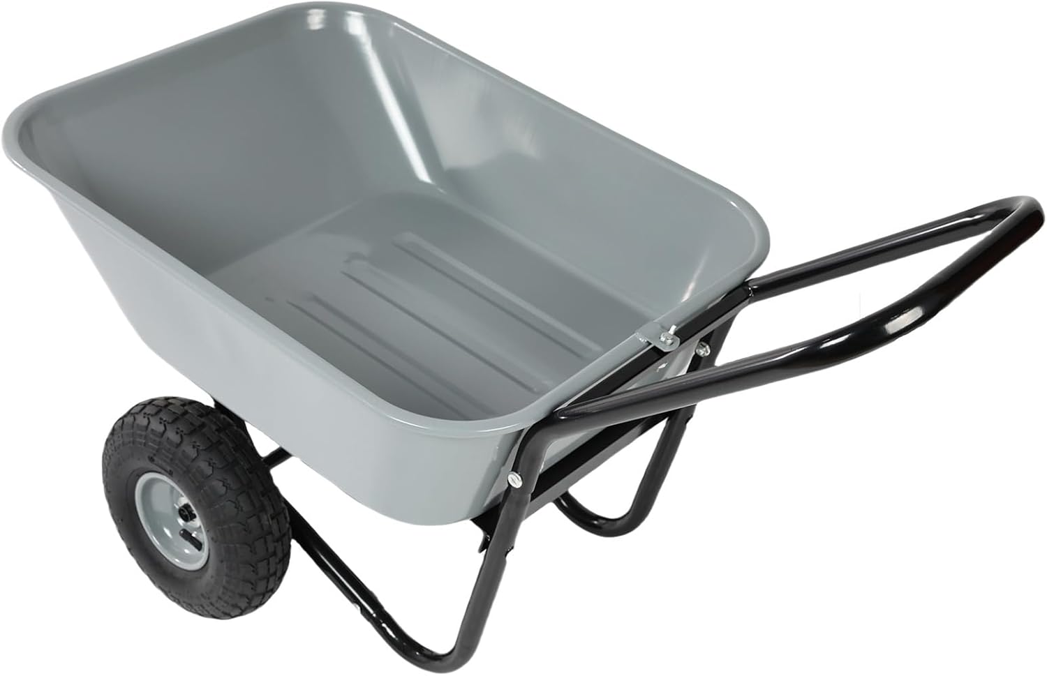 Dual Wheel Wheelbarrow, Heavy Duty Garden Cart, 300 lbs Capacity Utility Cart with Two 15 inches Pneumatic Tires for Outdoor Lawn Yard Farm Ranch (Gray)