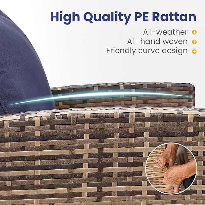 - All-Weather Durability: Built to last,the patio furniture set combines rugged construction with low-maintenance care. The powder-coated steel frame and handwoven PE wicker can spend less time maintaining and more time enjoying your outdoor