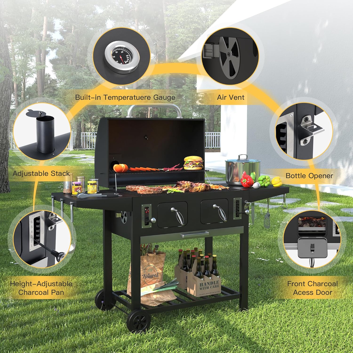- 【Easy Cleanup】Full-size pull-out ash tray easily collects ashes, grease and food residue, ensuring no fussy cleanup, so you can spend more time grilling and less time worrying about post-cooking maintenance with this charcoal grill
