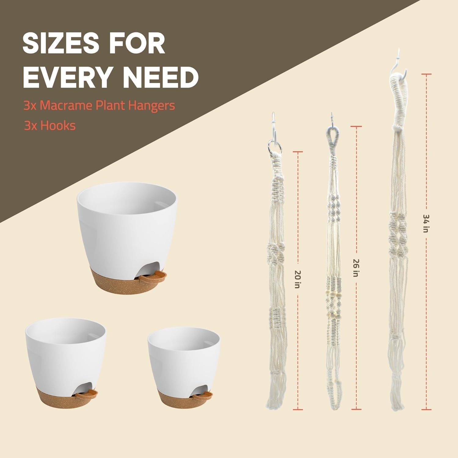 - HANGING HOOKS FOR EASY SETUP - No need for extra hardware—this set comes with 3 sturdy hooks so you can easily hang your plant pots from the ceiling, wall, or balcony. It's the all-in-one solution for effortless indoor or outdoor plant styling.