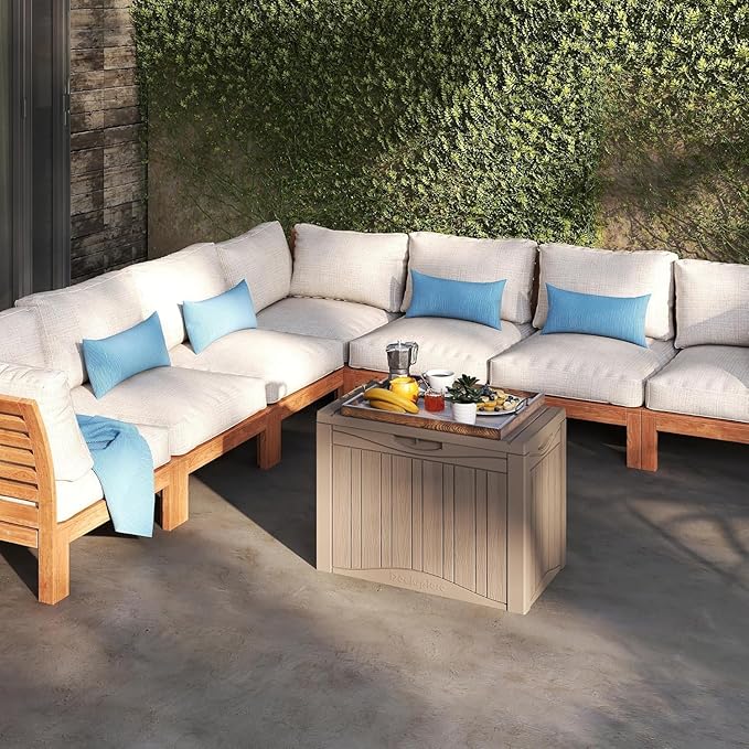 - Large Capacity: This 50-gallon deck box offers ample storage space for your outdoor accessories, and it has a 300-pound weight capacity and can be used as a separate patio seat or indoor table.