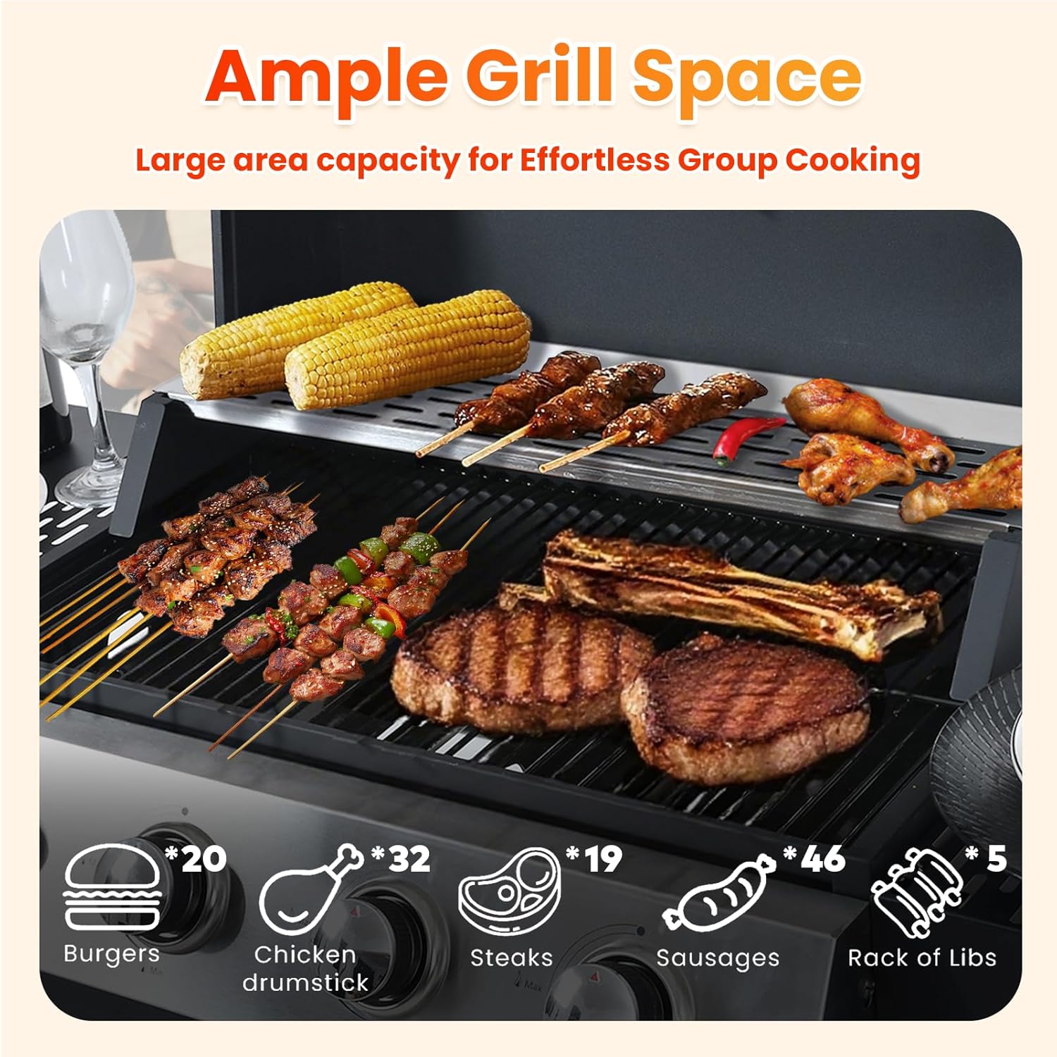- π Spacious Cooking & Warming Areas - Equipped with porcelain-enameled wire grates, this gas grill offers a generous 19.6" x 12.8" cooking area plus a 19.1" x 3.7" warming rack. Youβll have ample space to sear steaks, grill burgers, and keep side dishes warmβall at the same time. Perfect for family meals and outdoor gatherings.