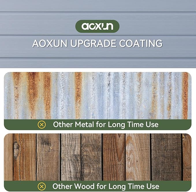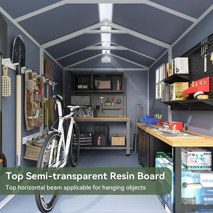 - Large Capacity Space & DIY: The outdoor shed is thoughtfully designed with ample capacity, offering generous space for storing your outdoor items or equipment, such as tools and bikes. This ensures that your backyard remains tidy and well-organized. In addition, you can purchase your own shelving to do DIY on the interior space