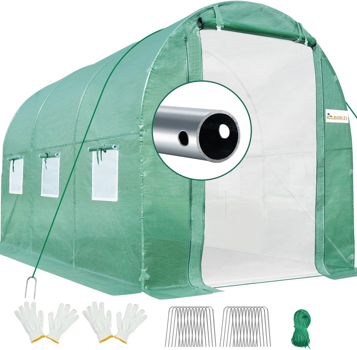 KING BIRD Premium 10x6.6x6.6FT Greenhouse for Outdoors, Large Walk-in Heavy Duty Galvanized Steel Frame, Mesh Door Screen Window Upgraded Zipper Tunnel Hoop for Garden Plant Winter, Green