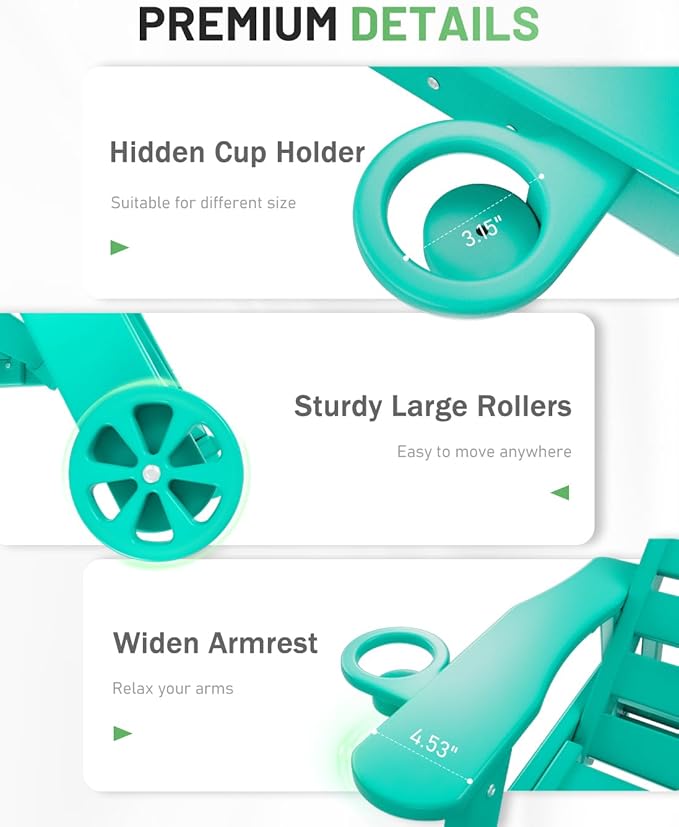 - Easy Mobility:The chaise lounge outdoor feature two large wheels, making it easy to roll to your desired spot. Perfect to rearrange your seating for optimal comfort, whether you’re hosting a gathering, or just looking to relax