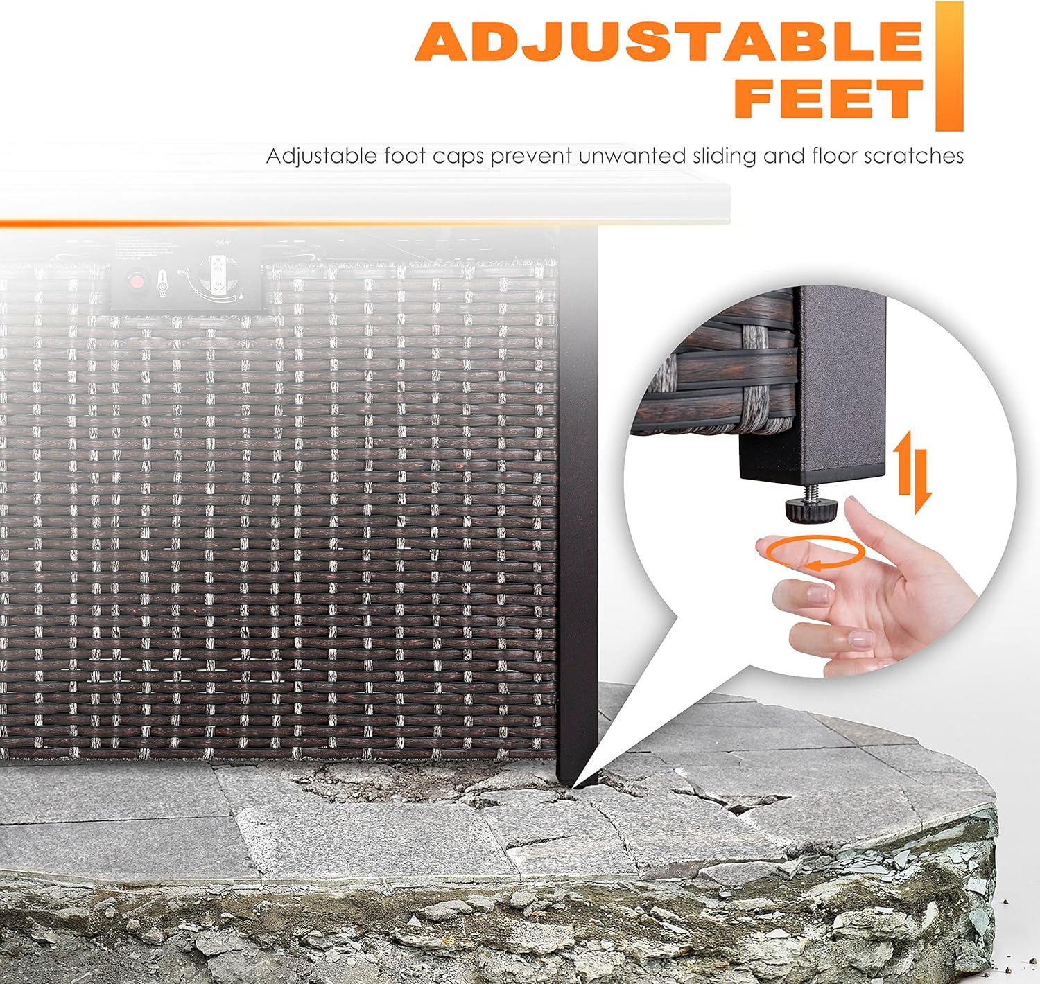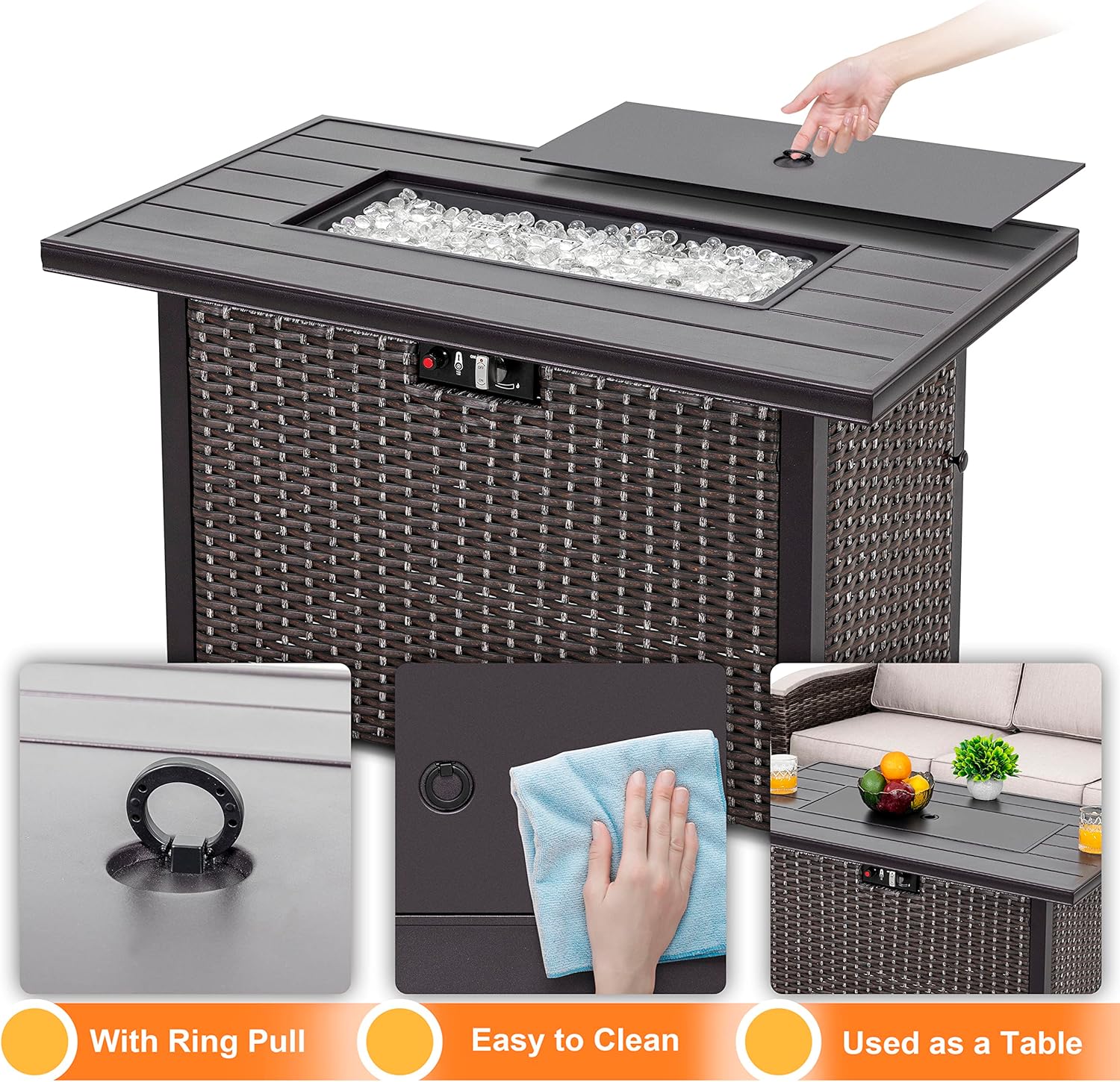 - EASY IGNITION & FLAME ADJUSTMENT: The electronic ignition system (AAA battery not included) allows you to light the table safely and effortlessly. The control knob is made of zinc alloy for a longer life span. Just push the button and turn the control knob to adjust the flame to the desired temperature