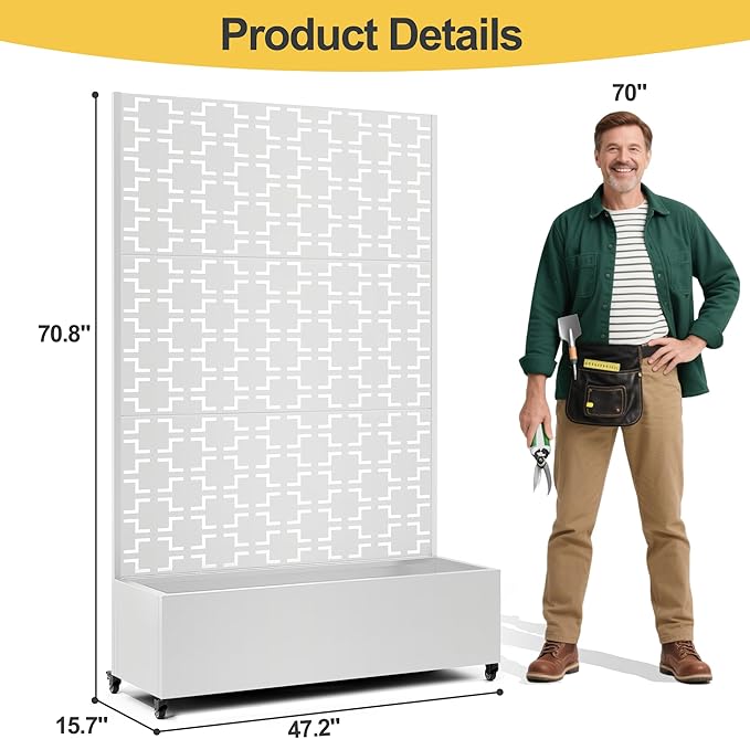 - Suitable for Various Environments This planter with trellis is ideal for gardens, balconies, patios, and greenhouses, perfect for growing flowers, fruits, vegetables, and herbs. It also serves as an privacy planters for patio, creating a tranquil space. Ideal for beautifying your area or enhancing privacy.