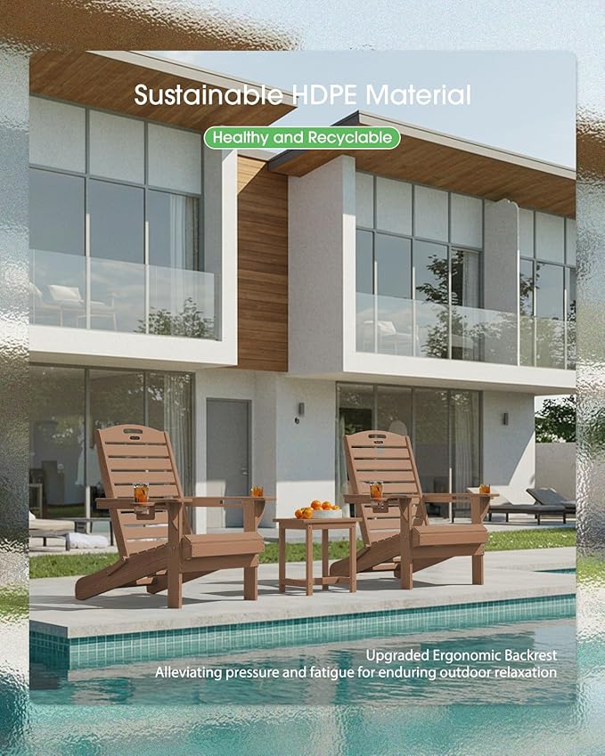 Adirondack Chairs Set of 6, Outdoor Fire Pit Chairs, HDPE All-Weather Adirondack Chairs with Cup Holder, Lawn Chair for Deck, Patio, Garden (Teak)