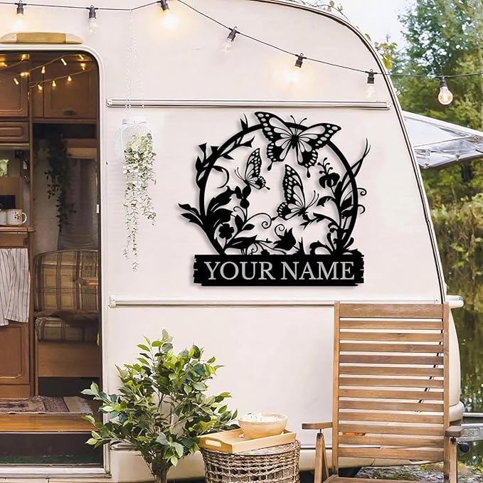 Custom Butterfly Metal Sign,Personalized Butterfly House Number Signs,Personalized Gardener Name Sign,Garden Patio Wall Decor (Style-4)