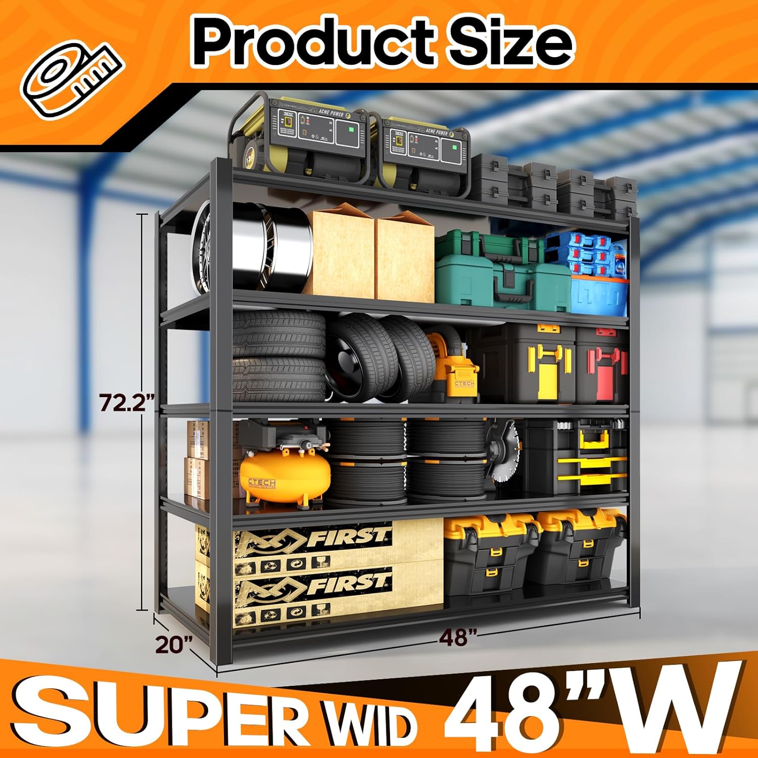 Garage Shelving Heavy Duty,5 Tier Adjustable Metal Shelving Storage Rack,Storage Shelves,48" Wx20 Dx72.2 H,Industrial Shelving Unit for Basement,Warehouse,Garage Organization.2 Pack