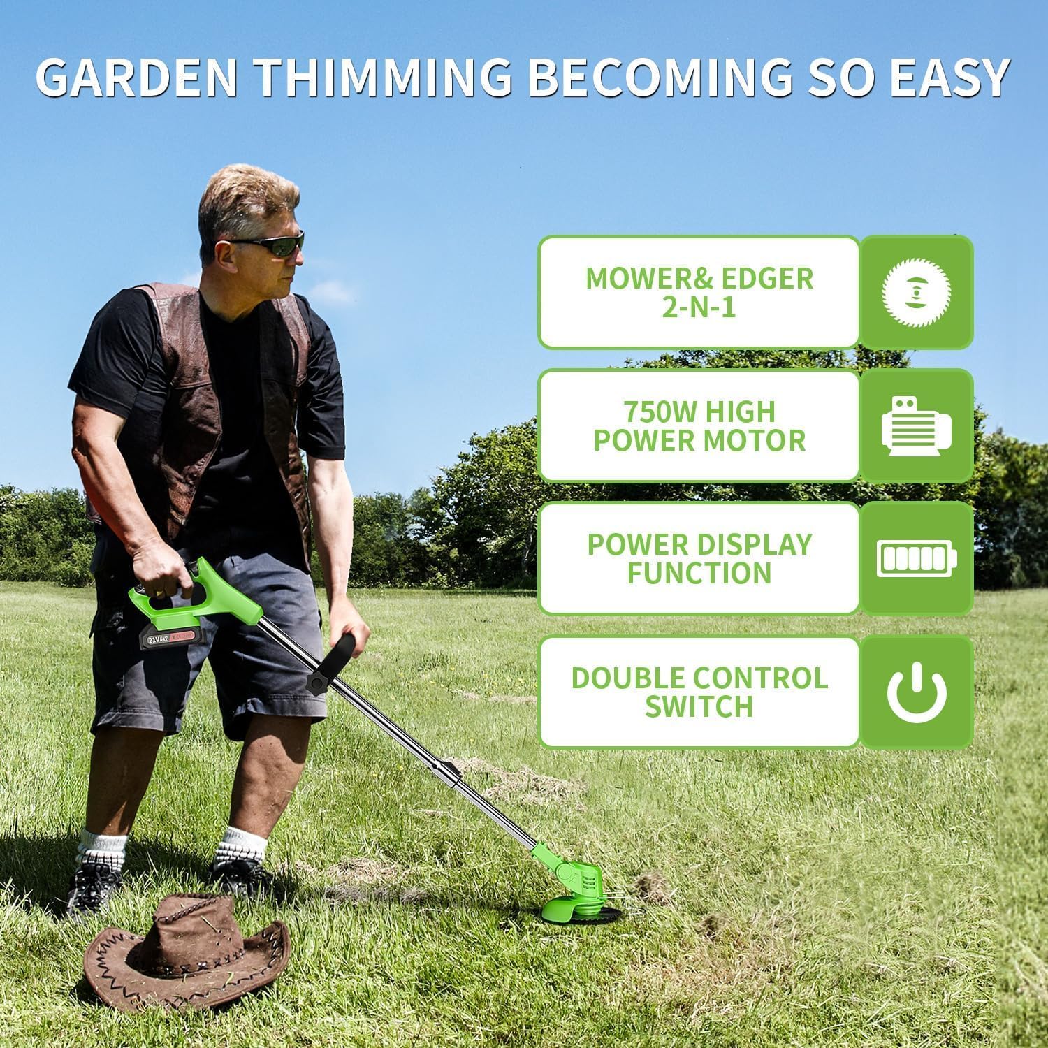 - electric weed wacker:Say goodbye to the endless unraveling of extension cords, searching for an outdoor power outlet, or the constant fear of accidentally cutting the cord itself. Our trimmer is powered by two premium lithium-ion batteries that deliver consistent, robust performance from the first cut to the last.The batteries charge quickly and hold their charge for extended periods, so your tool is always ready when you are. This isn't just a tool.